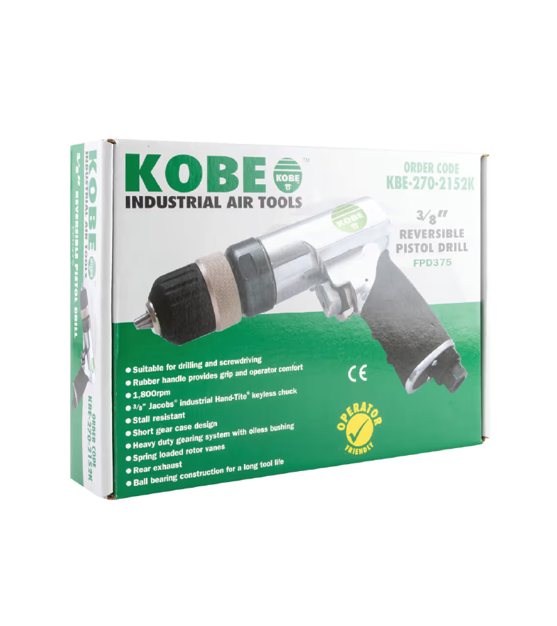 Kobe Green Line FPD375, Air Drill, Air, 1800rpm, Keyless, 1 to 10mm, 1/4in., 336W
