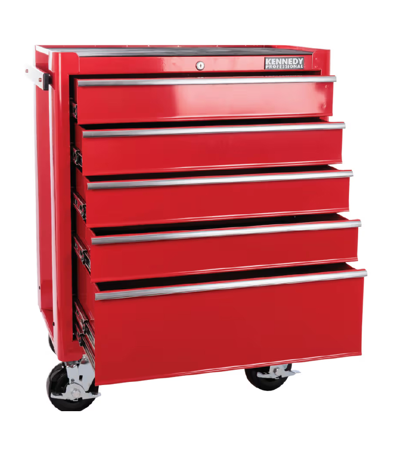 Kennedy Roller Cabinet, Classic Range, Red, Steel, 5-Drawers, 890 x 690 x 460mm, 350kg Capacity